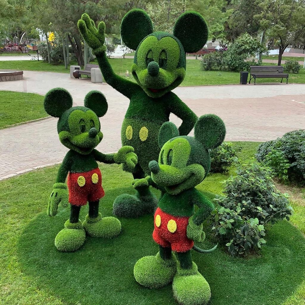 ТОПИАРИ КОМПОЗИЦИЯ Мики Маусы от производителя имеет яркий окрас. Искусственная трава газонов – разноцветная. Уникальные скульптуры идеально подойдут для территорий детских садов, школ и игровых площадок.