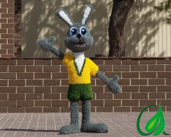 ТОПИАРИ Заяц ну погоди от производителя имеет яркий окрас. Искусственная трава газонов – разноцветная. Уникальные скульптуры идеально подойдут для территорий детских садов, школ и игровых площадок.